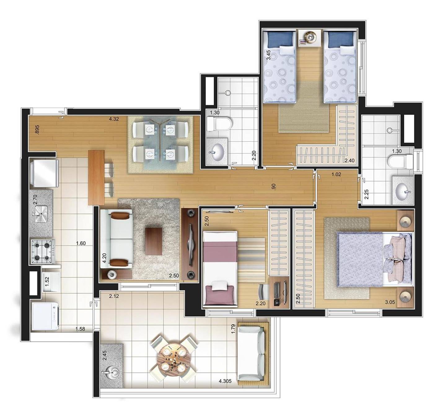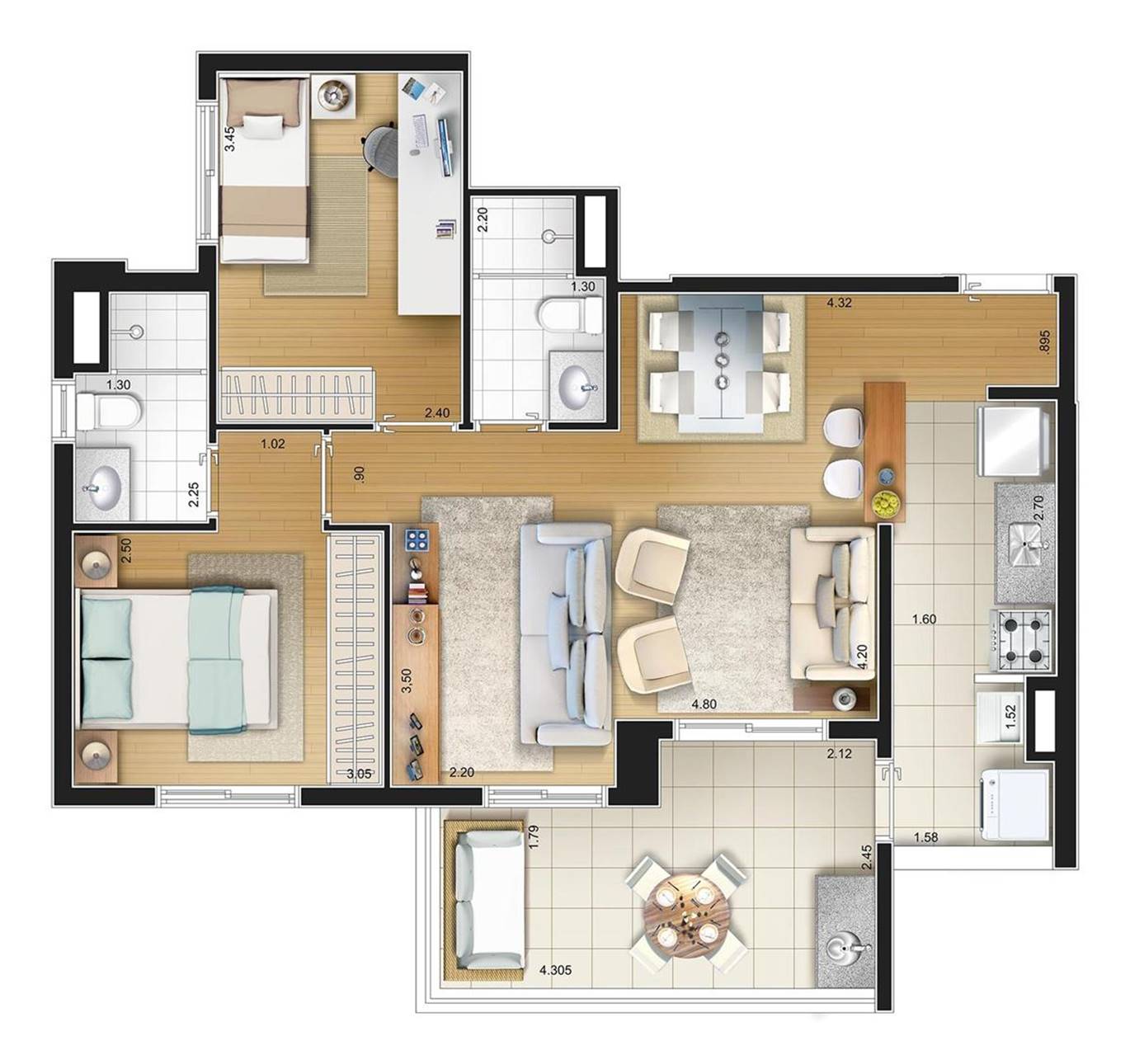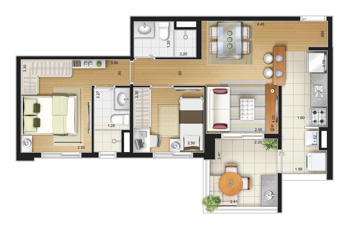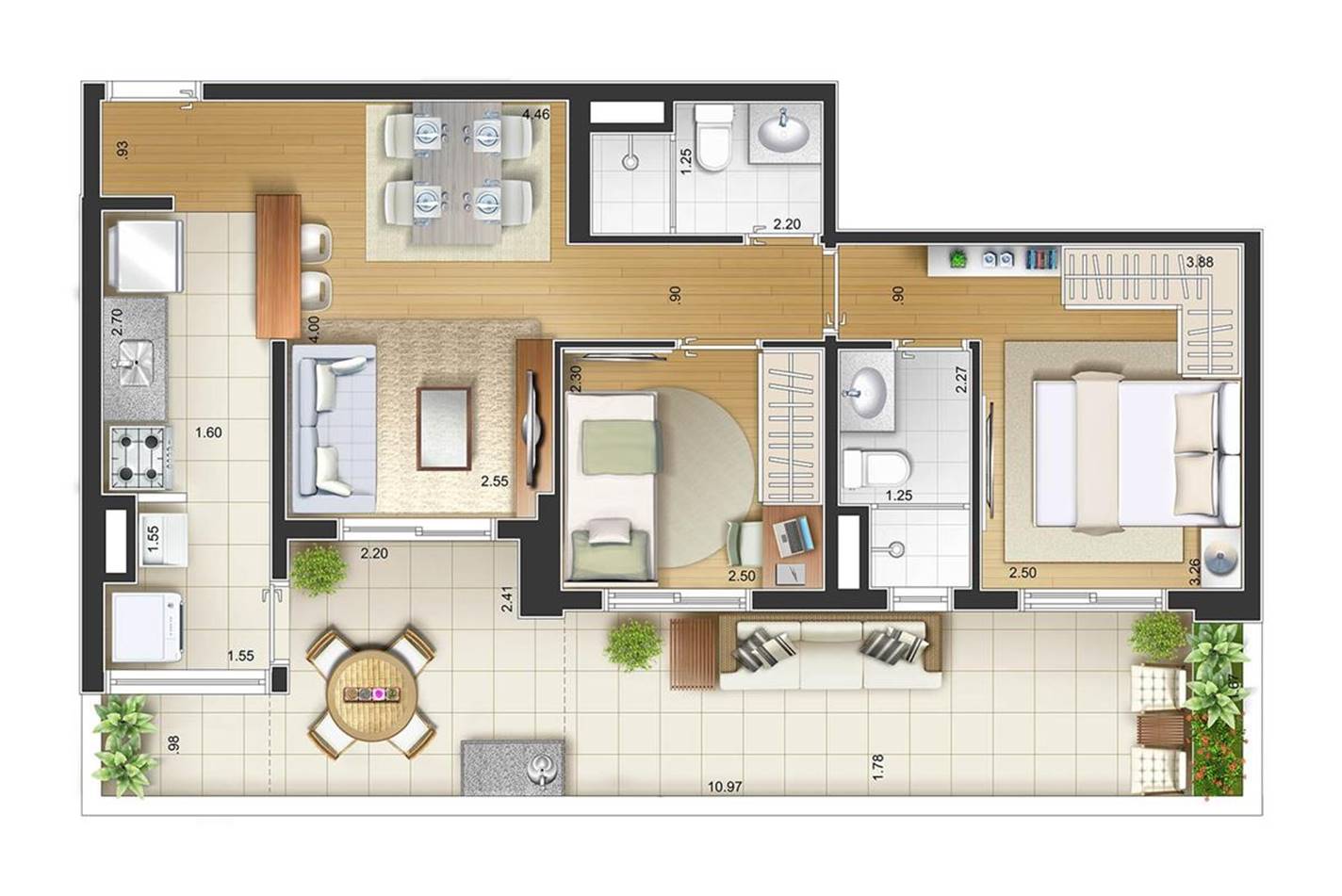 O Attuale Lorenzini apresenta o condomínio mais completo da região distribuído em uma área de 3.313m² e torre única de 18 andares com apartamentos tipo nas metragens de 56, 57 e 70m² com 1 e 2 vagas, todos com suíte, e também unidades "Garden" no térreo, estas unidades possuem a mesma planta tipo porém uma área externa maior que as demais, ideal para quem possui animais de estimação ou procuram mais espaço e conforto na área externa de seu apartamento.
